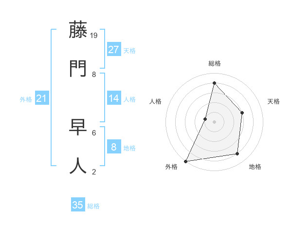 藤門 早人さんの総格は35画の4点!