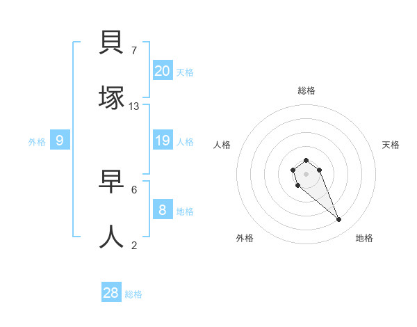 貝塚 早人さんの総格は28画の1点!
