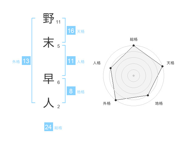 野末 早人さんの天格は16画の5点!