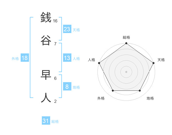 銭谷 早人さんの総格は31画の5点!