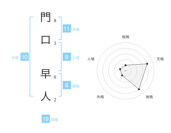 門口 早人さんの地格は8画の4点!