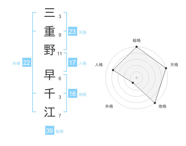 三重野 早千江さんを姓名の画数から五運を鑑定