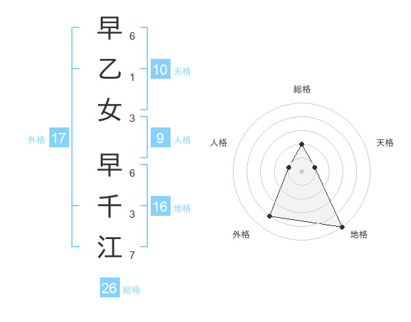 早乙女 早千江さんを姓名の画数から五運を鑑定