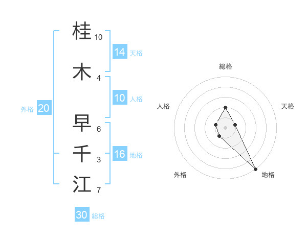 桂木 早千江さんを姓名の画数から五運を鑑定