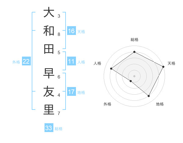 大和田 早友里さんを姓名の画数から五運を鑑定