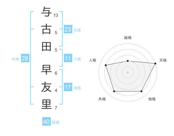 与古田 早友里さんの天格は23画の5点!