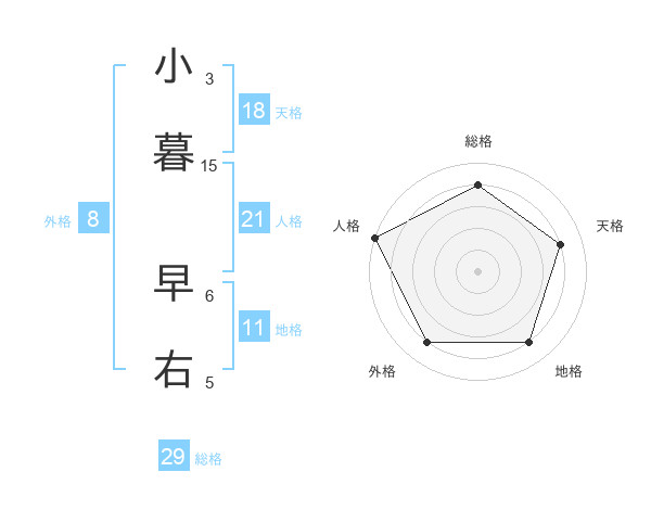 小暮 早右さんの天格は18画の4点!