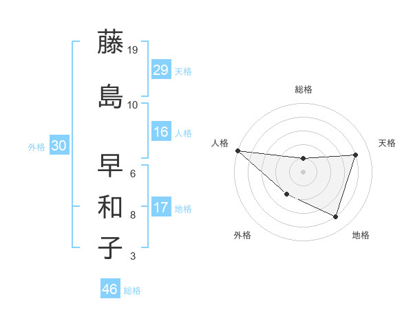 藤島 早和子さんの総格は46画の1点!