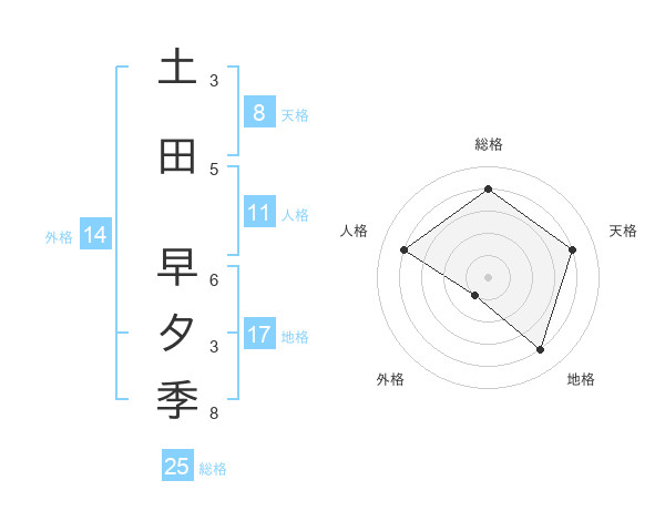 土田 早夕季さんを姓名の画数から五運を鑑定