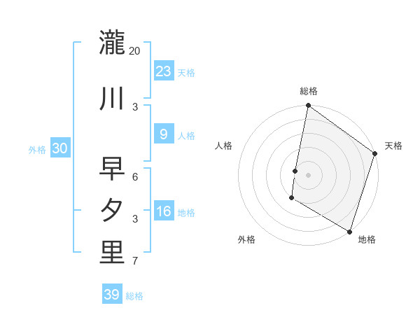 瀧川 早夕里さんを姓名の画数から五運を鑑定