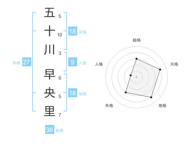 五十川 早央里さんを姓名の画数から五運を鑑定