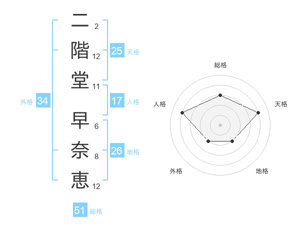 二階堂 早奈恵さんを姓名の画数から五運を鑑定