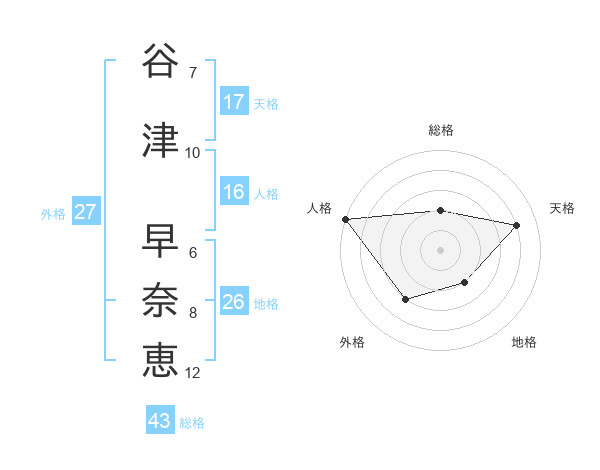 谷津 早奈恵さんを姓名の画数から五運を鑑定