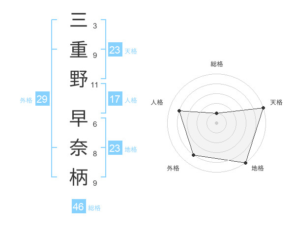 三重野 早奈柄さんの地格は23画の5点
