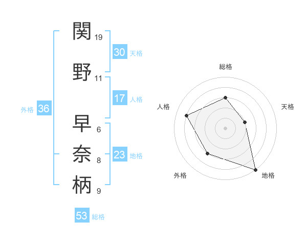 関野 早奈柄さんを姓名の画数から五運を鑑定