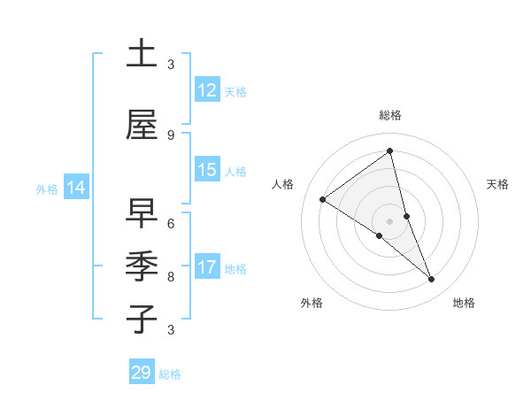 土屋 早季子さんの総格は29画の4点!