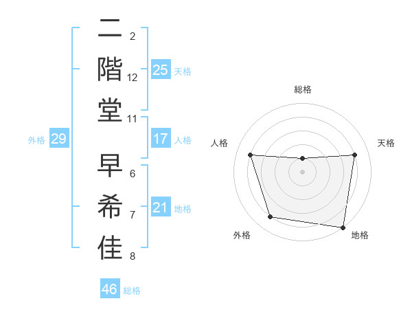 二階堂 早希佳さんの天格は25画の4点!