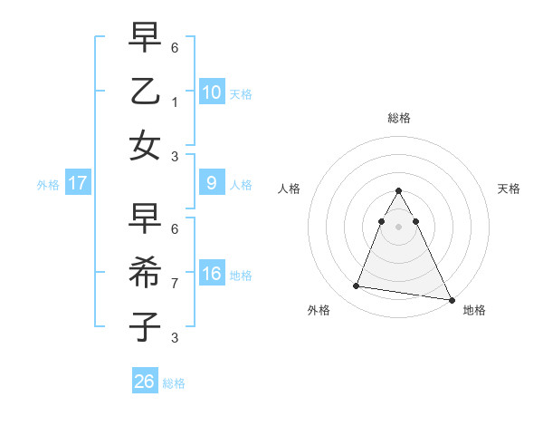 早乙女 早希子さんを姓名の画数から五運を鑑定