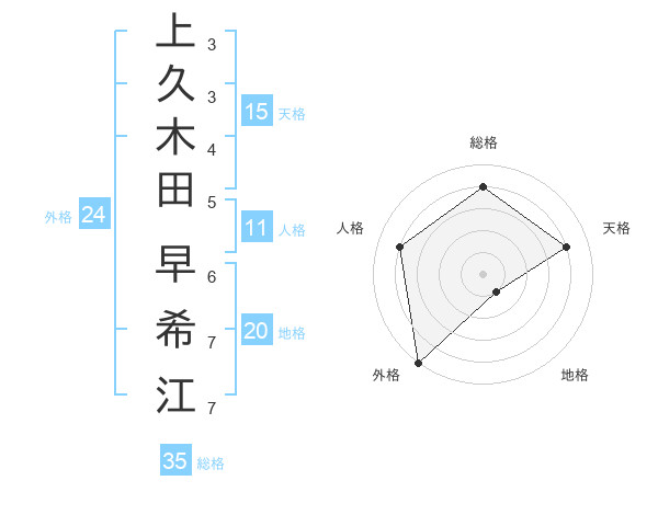 上久木田 早希江さんを姓名の画数から五運を鑑定
