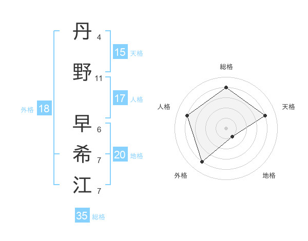 丹野 早希江さんを姓名の画数から五運を鑑定