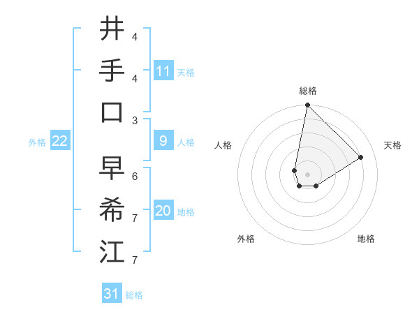 井手口 早希江さんを姓名の画数から五運を鑑定