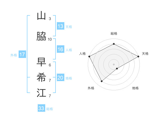 山脇 早希江さんの天格は13画の5点!