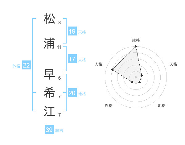 松浦 早希江さんの総格は39画の5点!