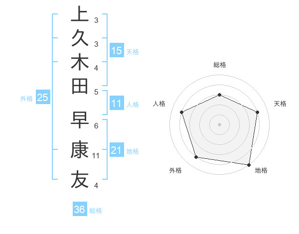 上久木田 早康友さんを姓名の画数から五運を鑑定