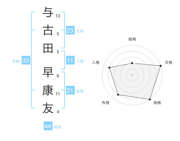 与古田 早康友さんを姓名の画数から五運を鑑定