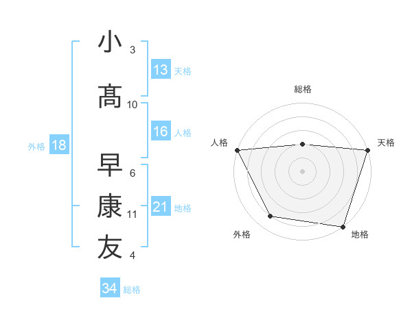 小髙 早康友さんの天格は13画の5点!