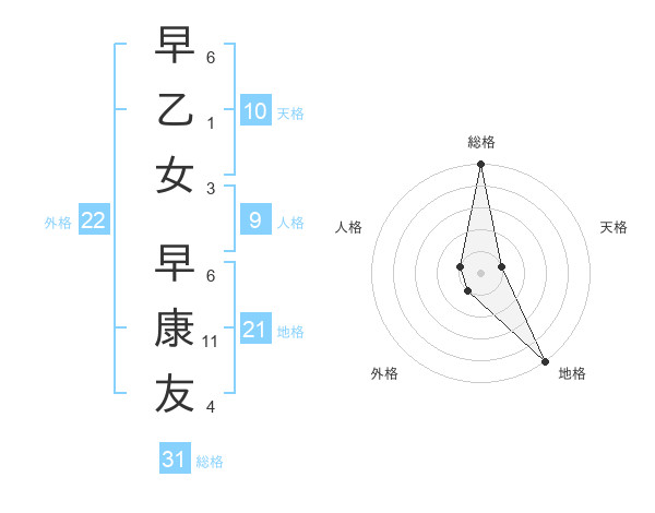 早乙女 早康友さんを姓名の画数から五運を鑑定