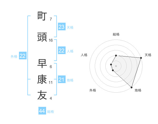 町頭 早康友さんを姓名の画数から五運を鑑定