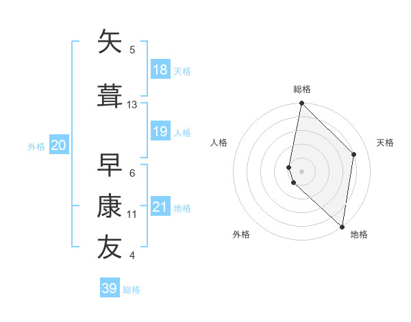 矢葺 早康友さんを姓名の画数から五運を鑑定