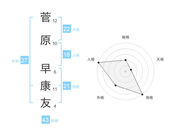 菅原 早康友さんを姓名の画数から五運を鑑定