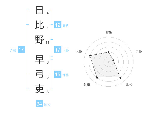 日比野 早弓吏さんの外格は17画の4点!