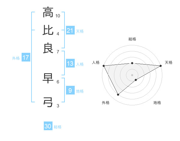 高比良 早弓さんの外格は17画の4点!