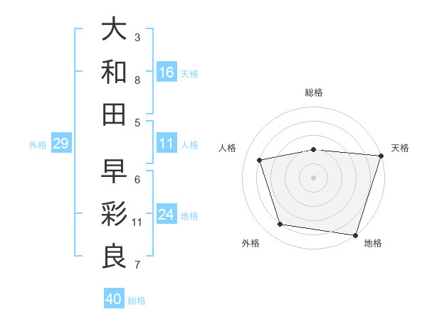 大和田 早彩良さんの総格は40画の2点
