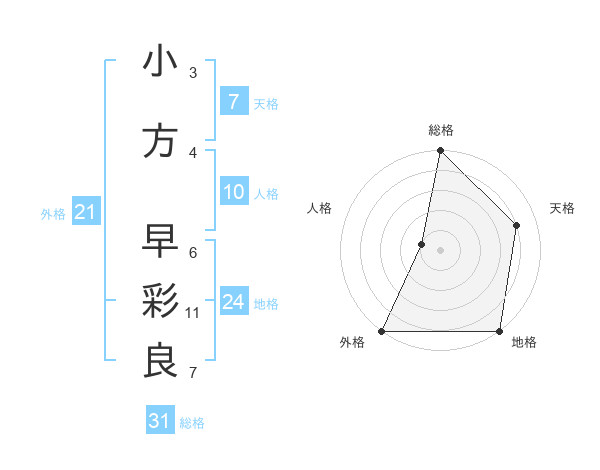 小方 早彩良さんを姓名の画数から五運を鑑定