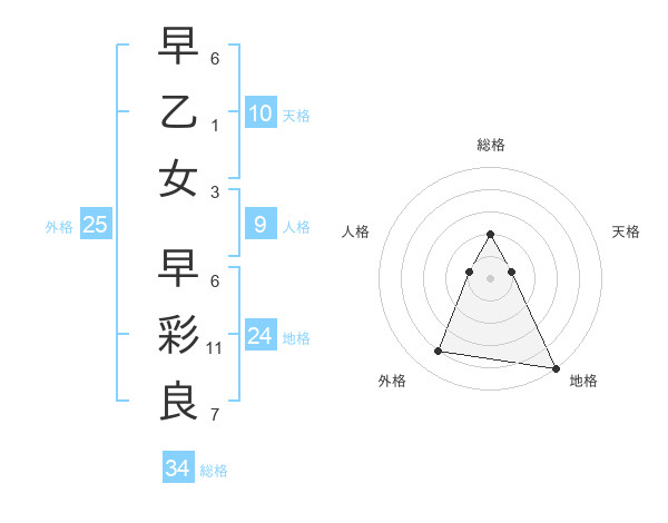 早乙女 早彩良さんを姓名の画数から五運を鑑定