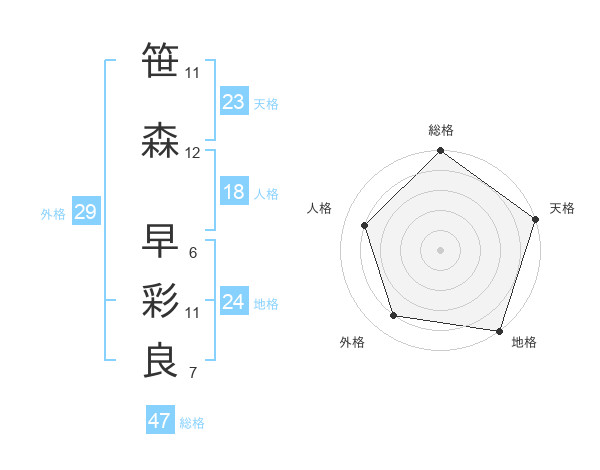 笹森 早彩良さんを姓名の画数から五運を鑑定