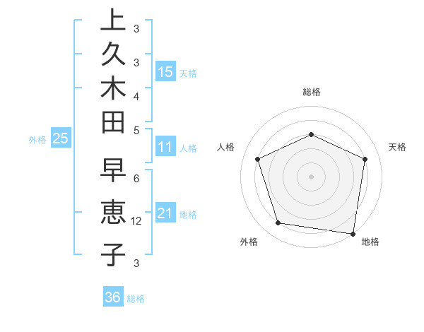 上久木田 早恵子さんの地格は21画の5点!