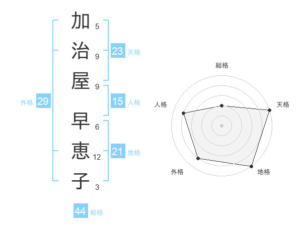 加治屋 早恵子さんを姓名の画数から五運を鑑定