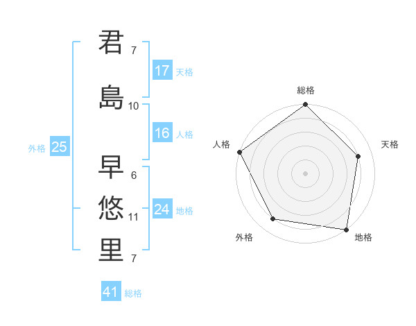 君島 早悠里さんを姓名の画数から五運を鑑定