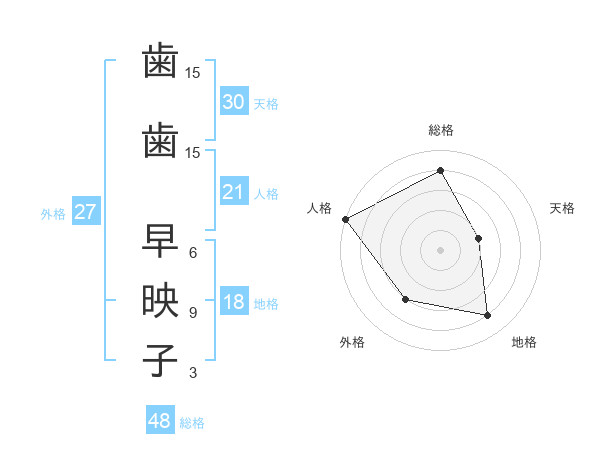 歯歯 早映子さんの天格は30画の2点!