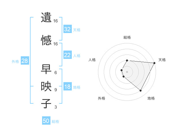 遺憾 早映子さんの総格は50画の2点!