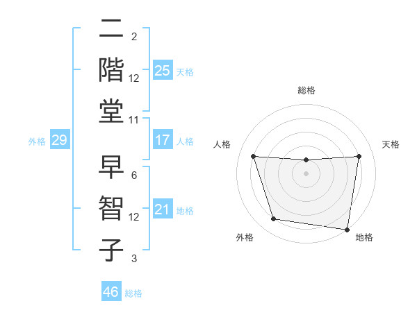 二階堂 早智子さんの天格は25画の4点!