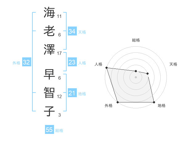 海老澤 早智子さんを姓名の画数から五運を鑑定