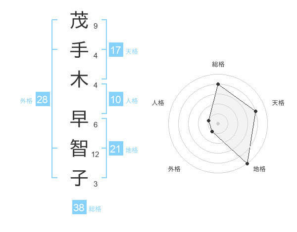 茂手木 早智子さんの天格は17画の4点!