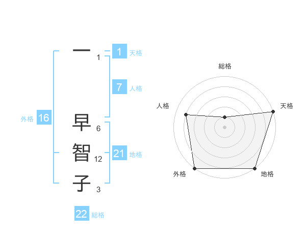 一 早智子さんの外格は16画の5点!