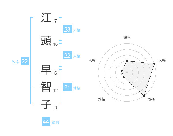 江頭 早智子さんを姓名の画数から五運を鑑定